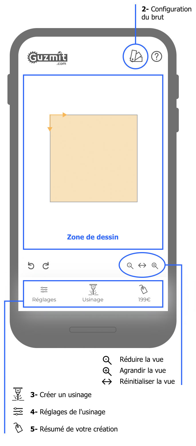 Vous pouvez changer la position de votre usinage en utilisant le toucher-glisser (voir 1-Navigation)
