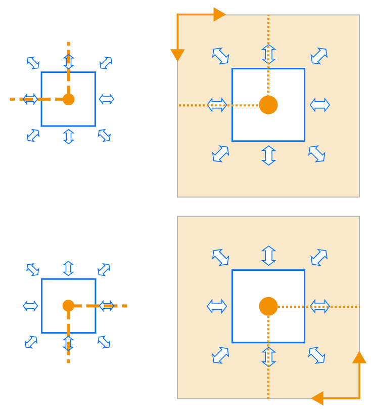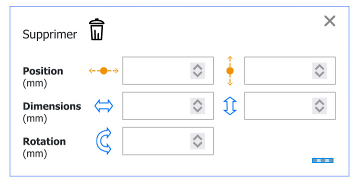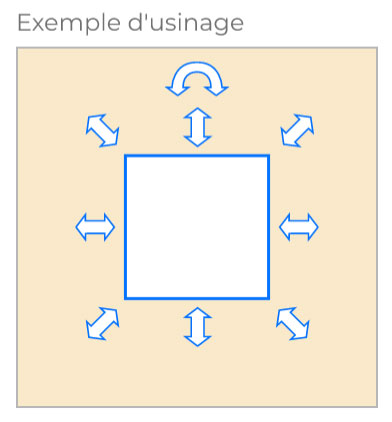 Vous pouvez modifier les dimensions de votre usinage à l'aide des 8 flèches de re-dimension :
