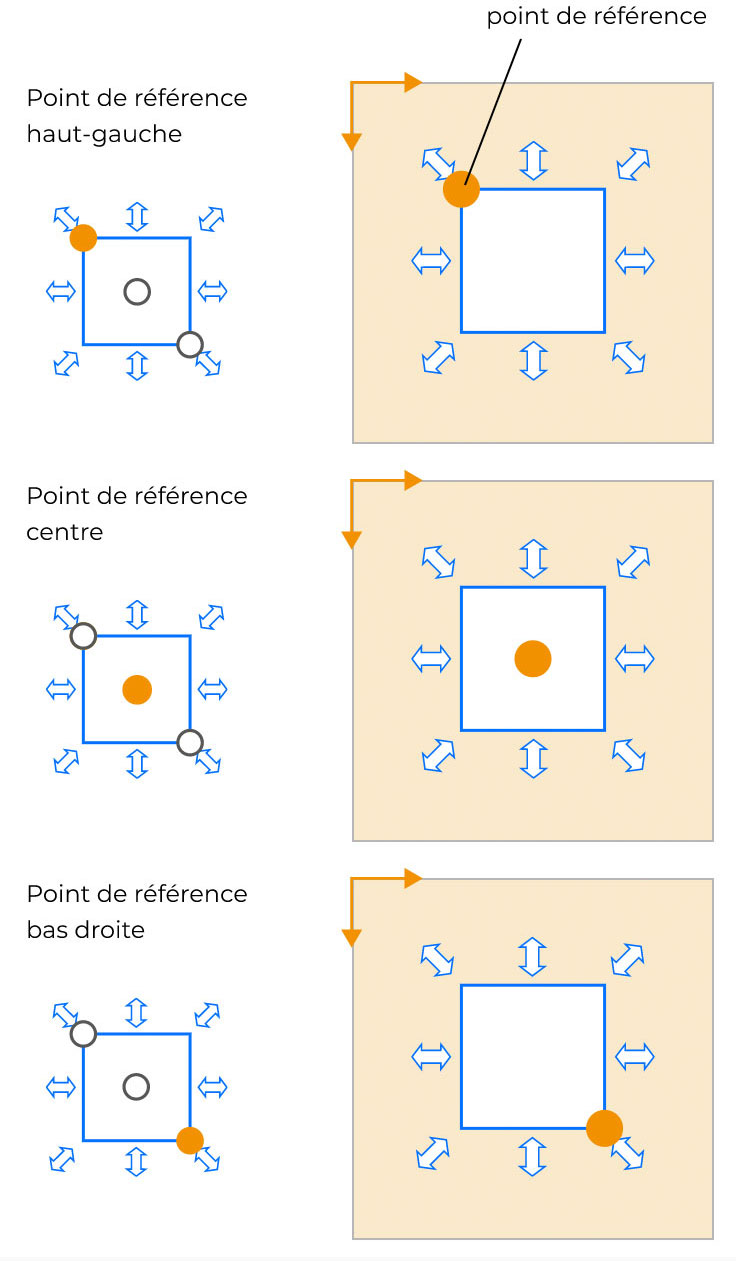 Vous pouvez modifier le point de référence de votre usinage en choisissant parmi :